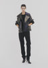 $2,495Crafted from richly textured crackle leather, this sculptural bomber jacket reinterprets a classic silhouette with modern edge. Defined by an oversized collar, asymmetric front closure, and zip pockets, it’s finished with adjustable side tabs and ribbed cuffs. Due to the nature of the leather, each piece will have unique texture and tone.